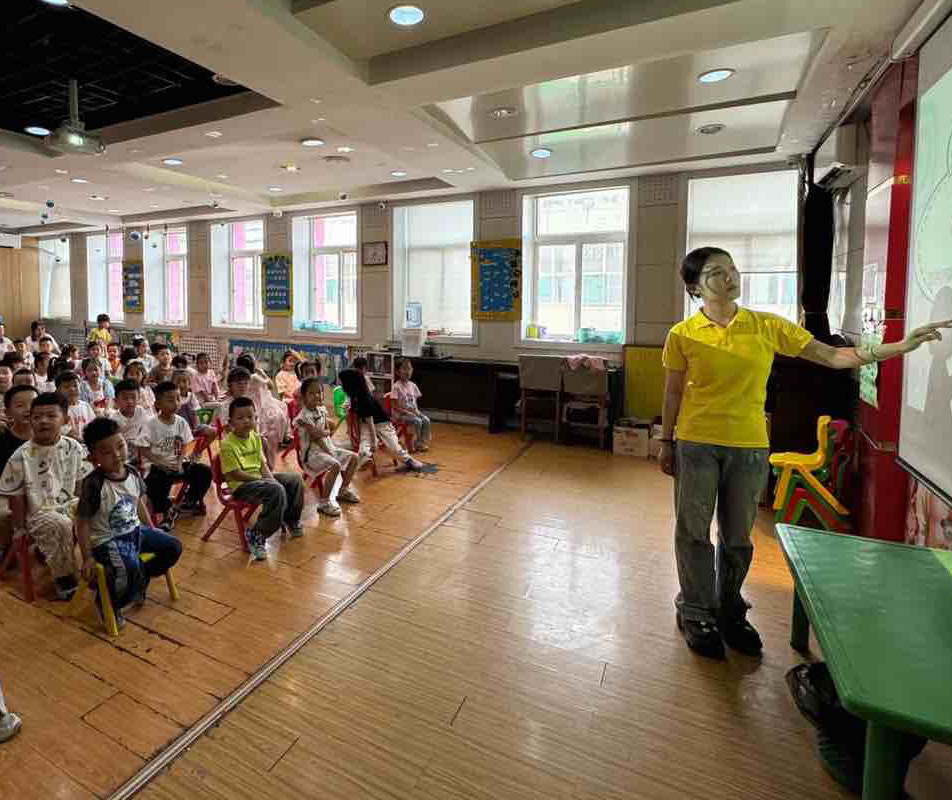 7月5日“医心乡伴”志愿服务队的成员们继续他们的实践活动,虽然天公不作美,下起蒙蒙细雨,但这依然挡不住成员们热情似火的激情。今天,志愿者们来到幼儿园,开启了一段非凡之旅。