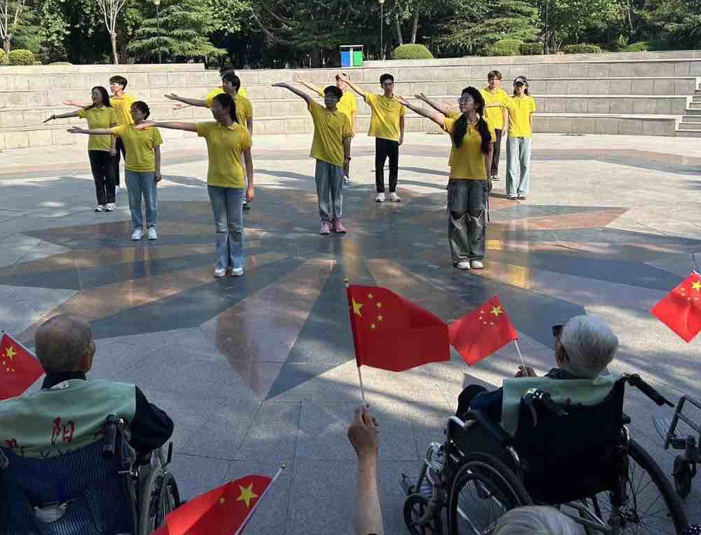 演出在一阵热烈的掌声中拉开帷幕,从活力四射的啦啦操到文字与声音完美邂逅的诗朗诵;从如诗如画的《我和我的祖国》扇子舞到韵律感丰富的课间操;从富有感染力的《勇气大爆发》到激情澎湃的《我爱你中国》大合唱;志愿者们全情投入,每一个音符、每一个舞步都凝聚着他们对老人的敬爱。
