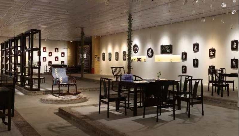 图5馆内陈列的各种家具、茶具等