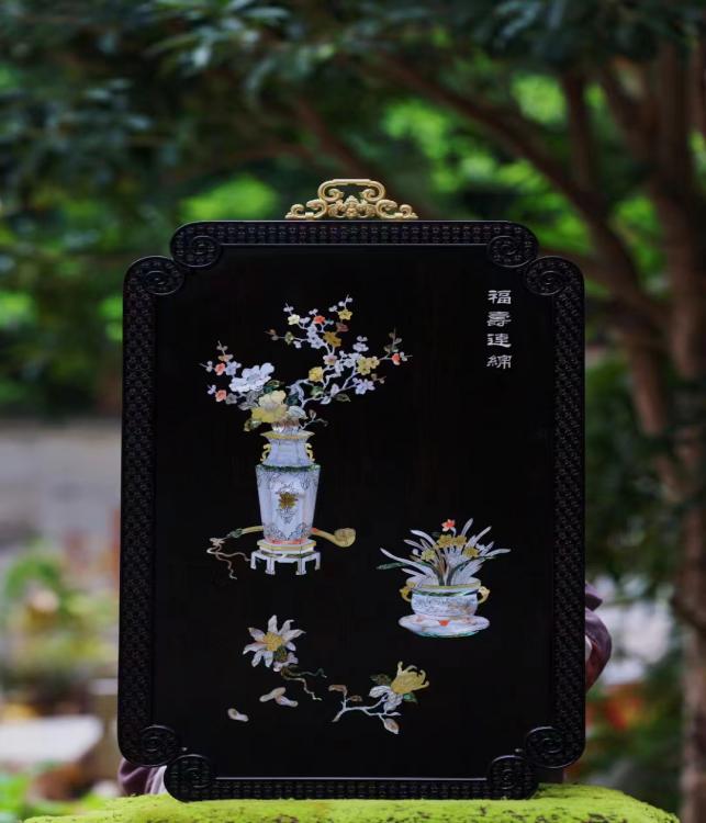 图4 工匠们在镶嵌环节图片 庄细强先生从事螺钿工艺数十年,为了让螺钿工艺技术更广而流传,他将螺钿工艺运用到了家具、茶具等生活用品上,让传统工艺与现代生活完美融合,这也为传统工艺的发展注入了新的活力。