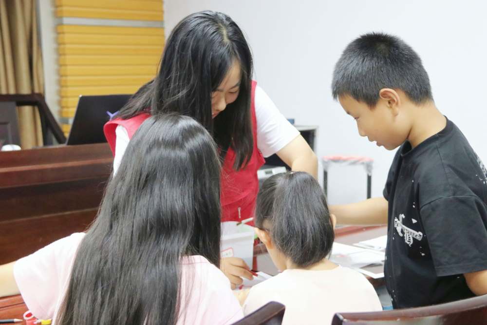 图为“薪火相传 代代守护”实践队成员耐心教学小朋友绘制禁毒宣传画。成都理工大学宜宾校区通讯员黄佳霖供图