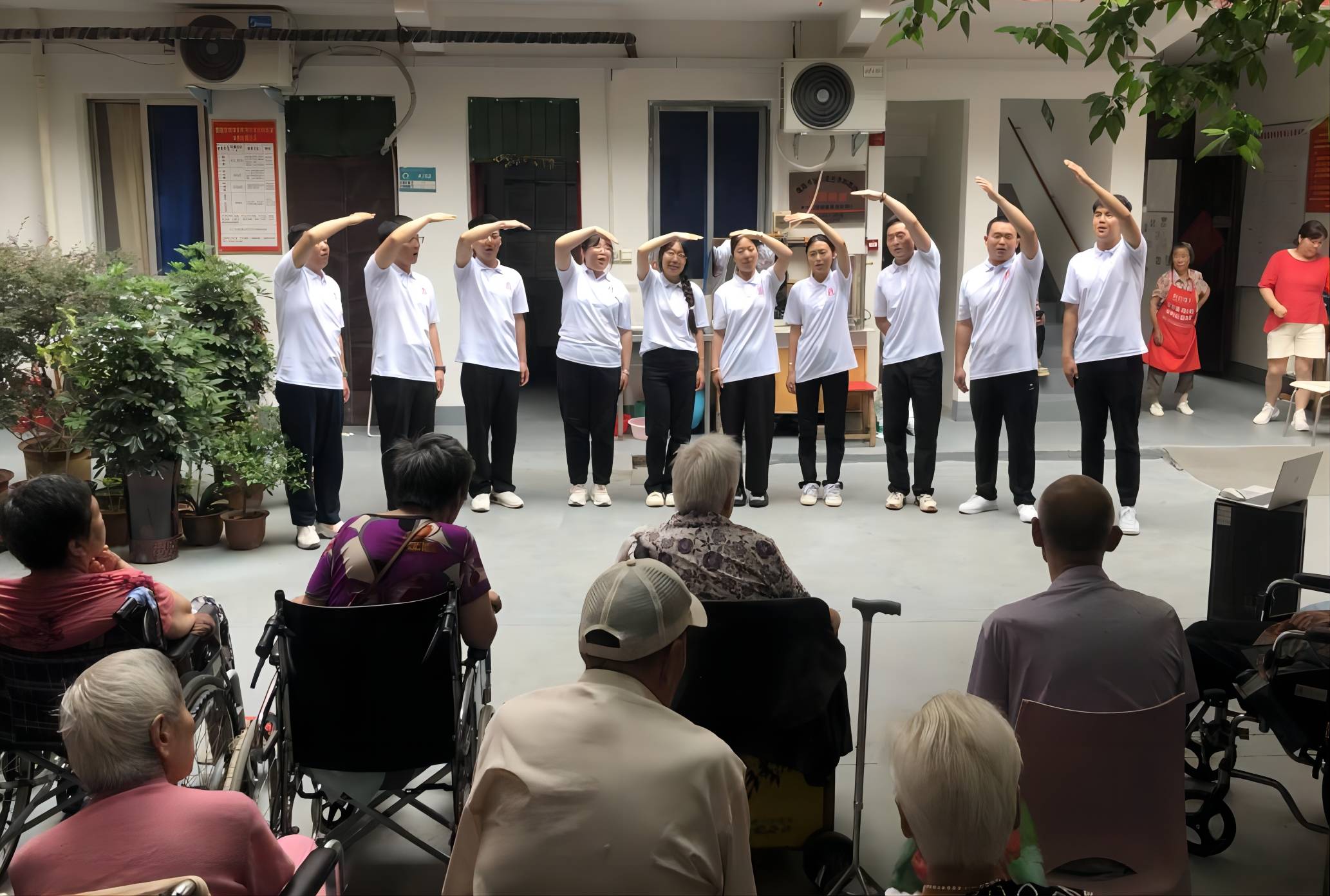 图为志愿者们为老人们合唱歌曲《明天会更好》,整场演出在大合唱中圆满落幕。