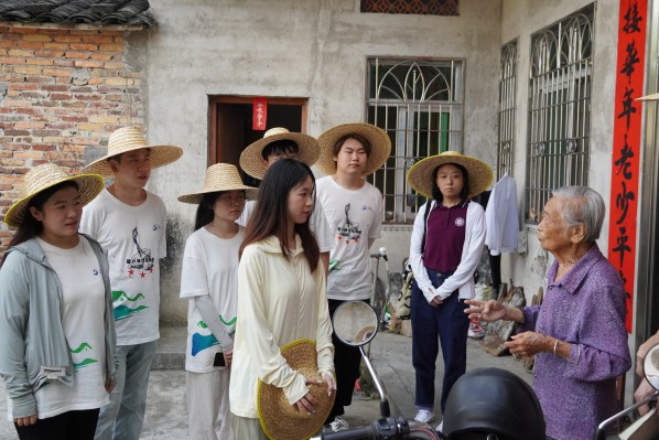 双方明确了此行目的与任务要点后,随即携手前往历史悠久的礼垌大屋,展开进一步的实地考察与工作部署。队员们为了更加了解礼垌村的故事,在礼垌村委员会干部带领下走进了村民的家中亲切交谈。实践队与居民密切交流,了解他们的实际需求,一同探讨合适的振兴方案。从礼垌大屋的历史到礼垌香薯种植试验基地的计划,从家庭生活的点滴到对未来的美好憧憬,村民们朴实无华的话语中透露出对生活的热爱与坚韧不拔的精神。
