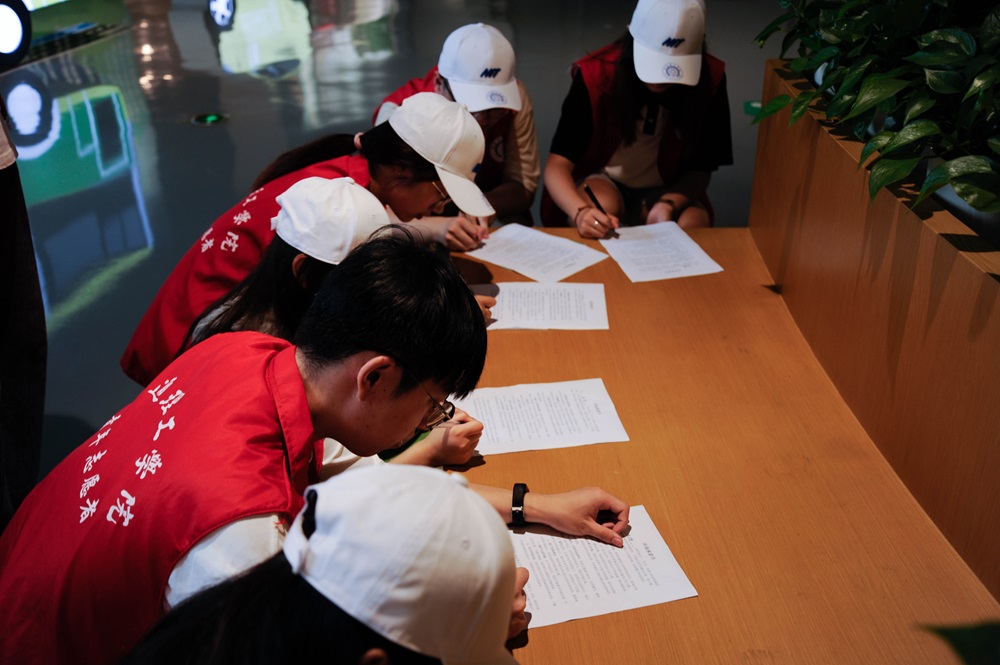 在讨论会结束后,团队成员们郑重地签署了环保承诺书。每位成员都在承诺书上签下了自己的名字,承诺将在日常生活中积极践行环保行动。具体承诺内容包括积极参与环保活动、节能减排、参与垃圾分类与回收、减少一次性用品的使用、坚持绿色出行、推广环保理念、保护生态环境、关注环保动态等。通过签署承诺书,成员们表达了自己对环境保护事业的坚定支持和积极参与的决心。