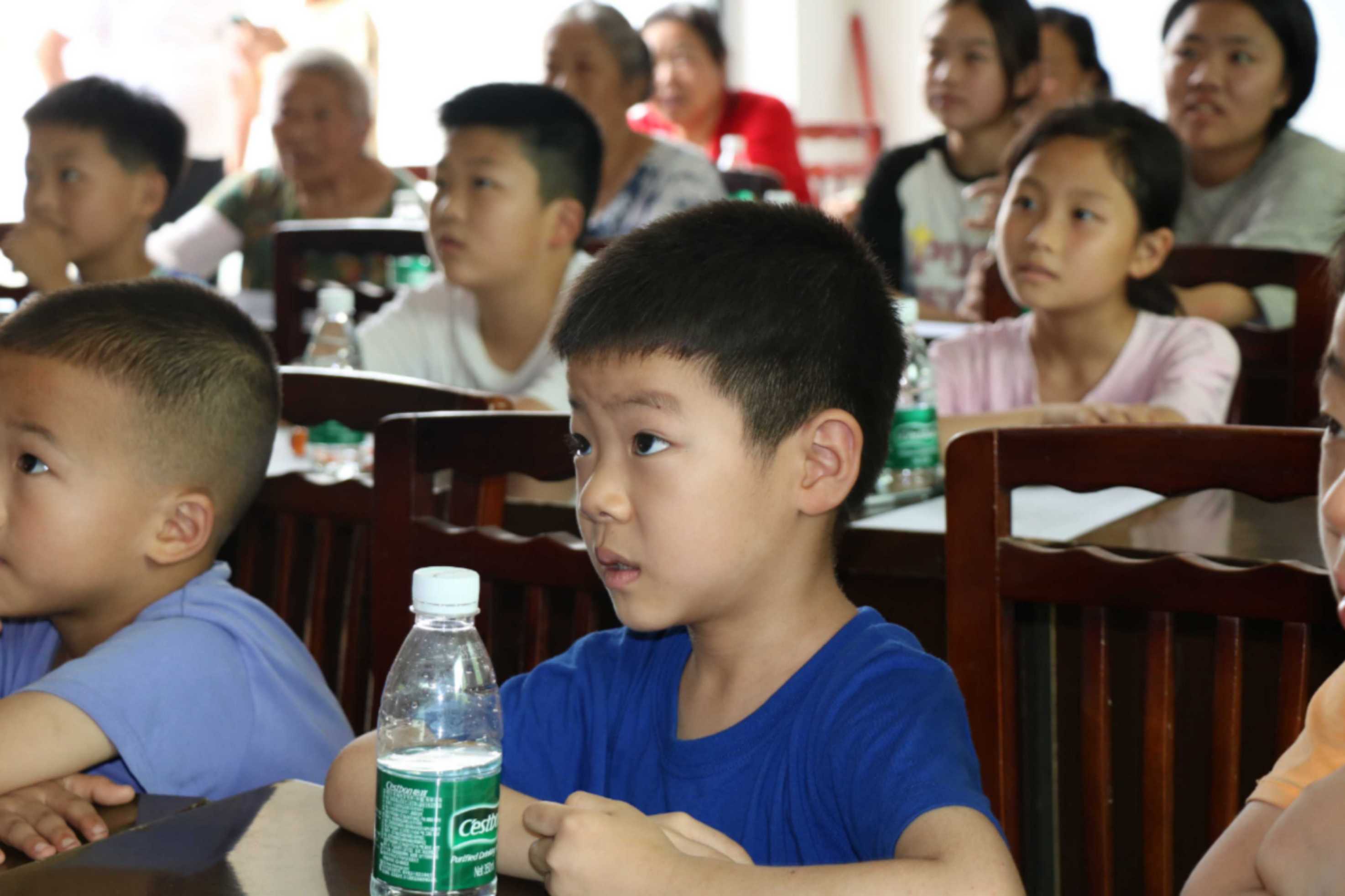 图为小朋友们被知识所吸引,并努力思考问题。 蓝添宜 供图
