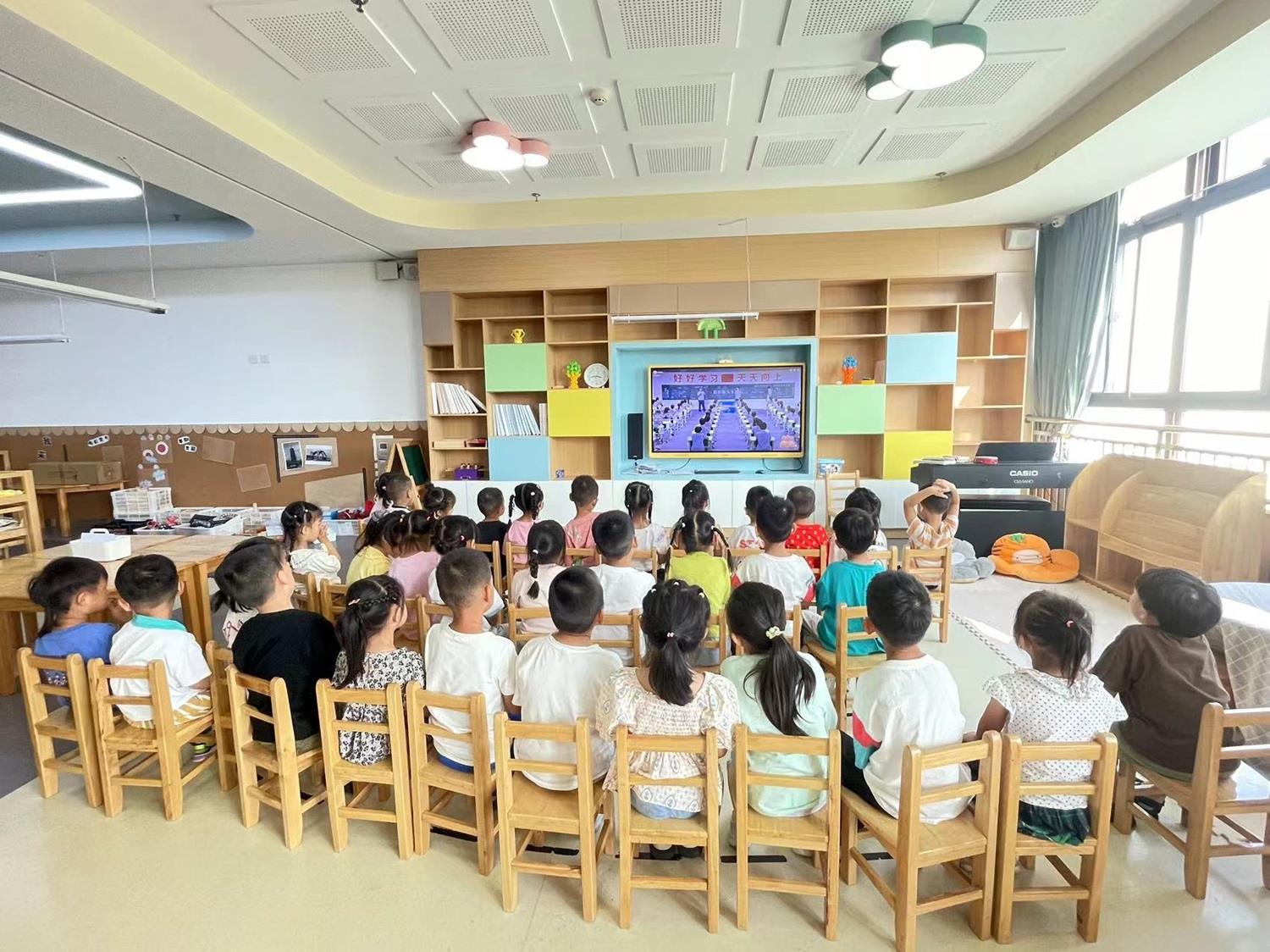 图为小朋友们在认真听垃圾分类的视频讲解 通讯员 翟涵悦 摄