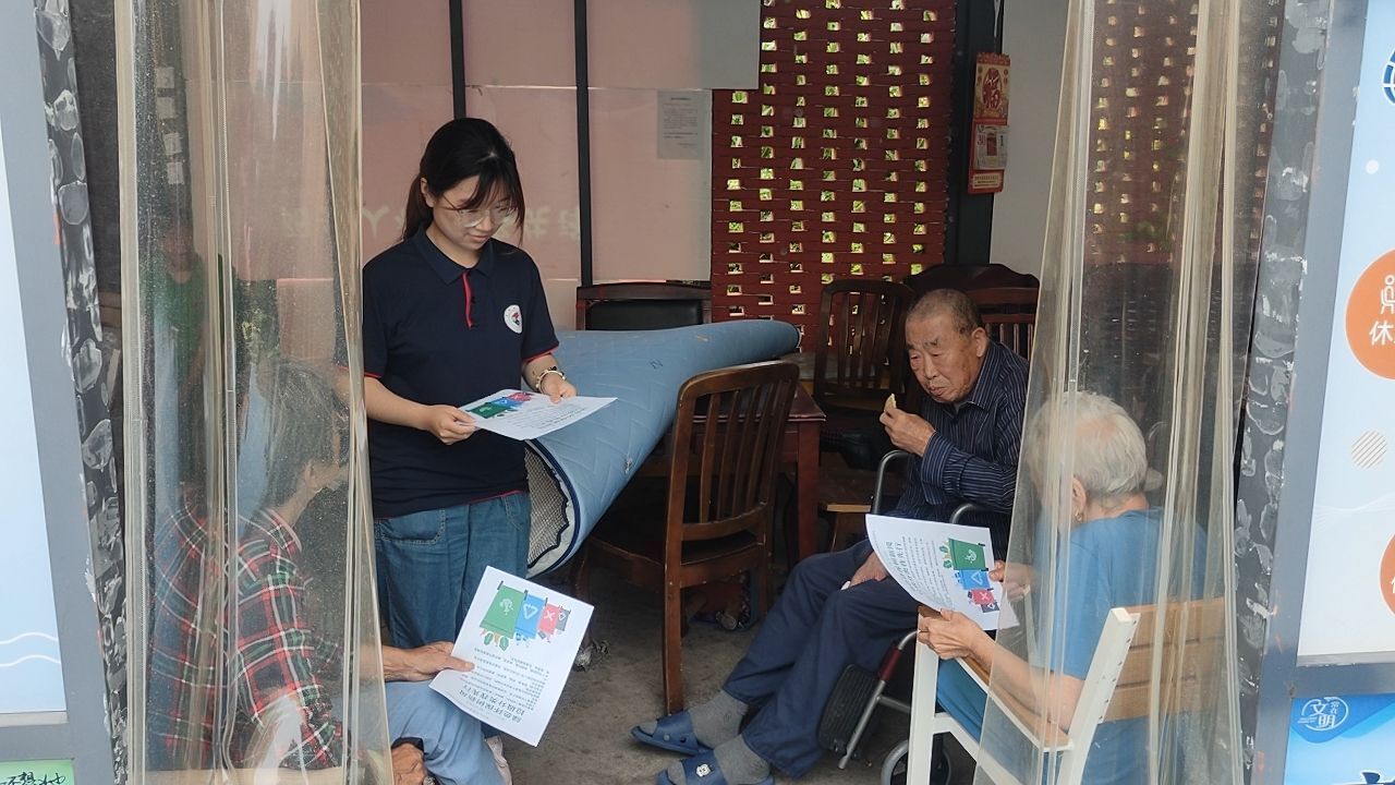 图为团队成员在爱心亭为老人讲解 通讯员 张译元 摄