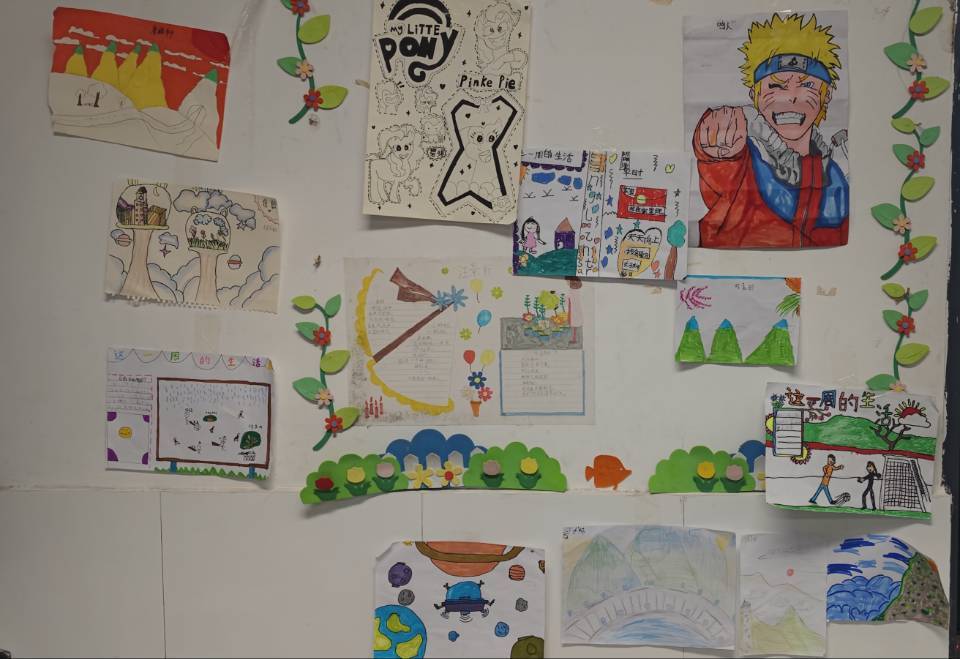 “艺”彩纷呈,展现学子风采。同学们运用在暑期少年宫学到的艺术知识,创作了许多作品。这些作品在艺术成果展示教室里构成了