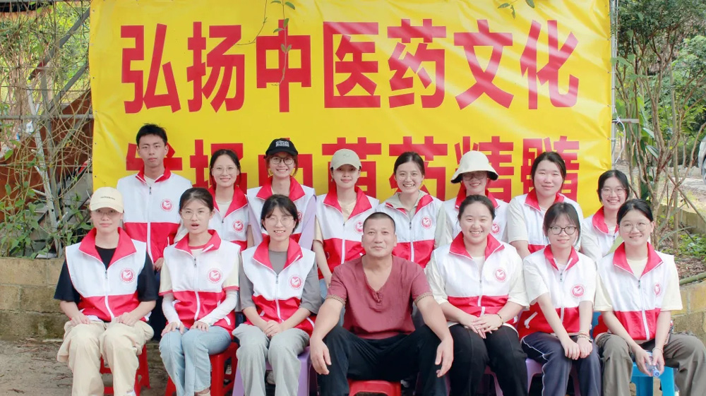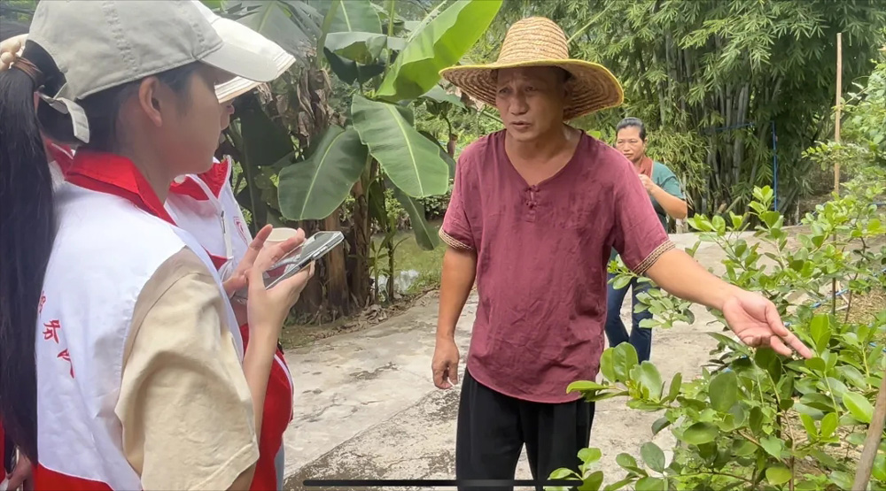 图为红旅研途志愿服务队与中草药基地负责人何永添合影留念 作者:陈晓增