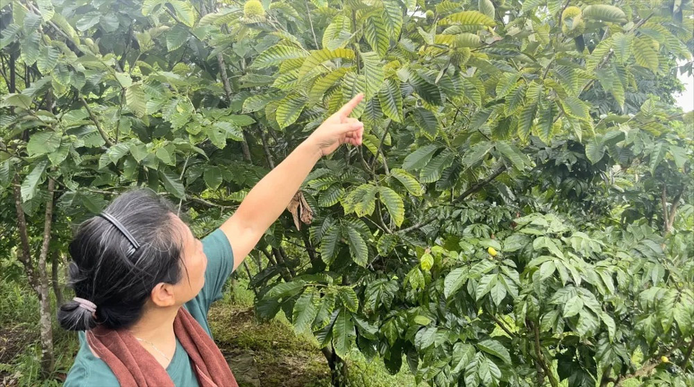图为中草药基地负责人正在介绍板栗 作者:陈晓增