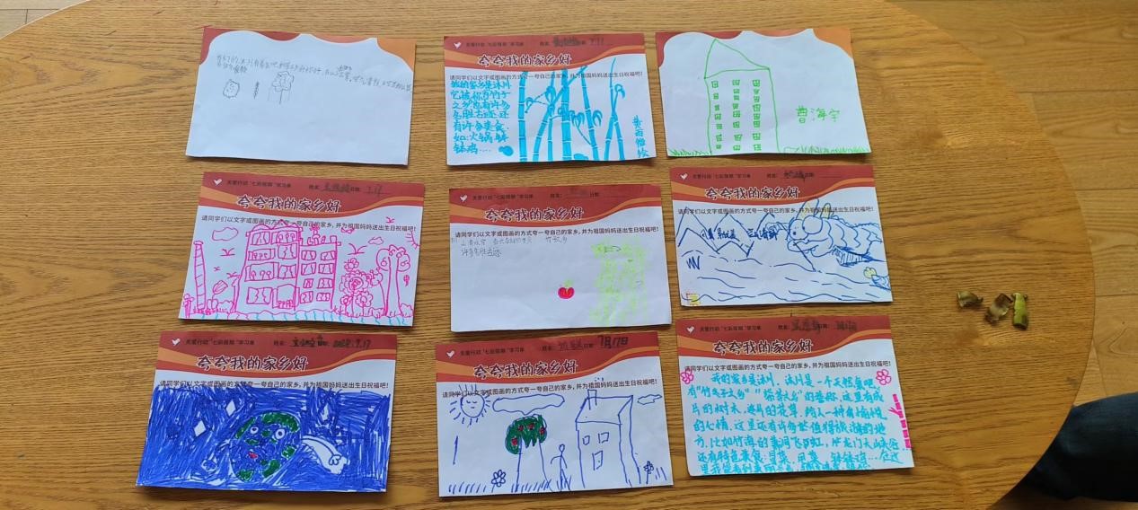 图为小朋友们的为家乡做的画以及想说的话。供图 邓春
