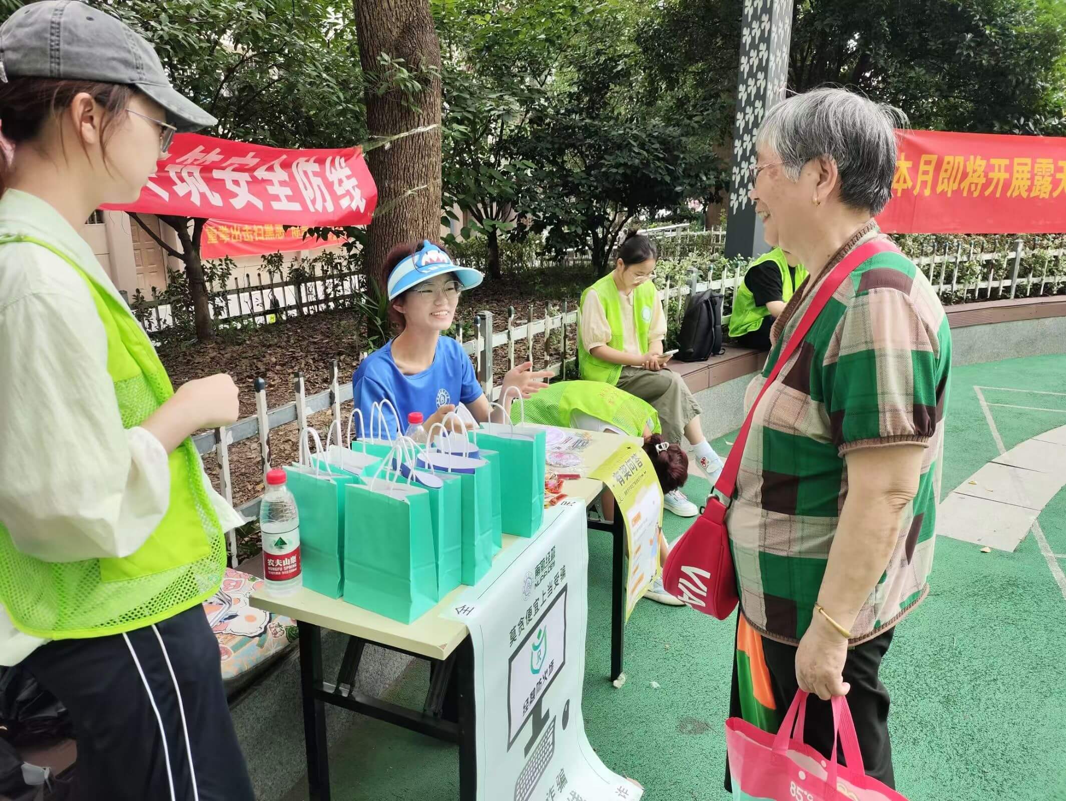 7月8日至7月9日,2组实践团队赴南京秦淮区瑞金新村,展开金融反诈宣传活动。在沿用设置摊位、走动宣传、入户走访等宣传模式的基础上,组织了“有奖问答”活动,更加吸引居民关注,志愿者们提出金融及反诈相关问题,任居民展开思考与回答,在聊天式的交流中了解反诈普及程度,聆听居民受骗过往,为居民答疑解惑、建言献策。“经融防火墙”团队未来将持续定期走进更多社区,开展此类宣传活动,不断与时俱进、创新形式、打磨内容,守护好人民的“钱袋子”,与基层组织携手共筑反诈“安全网”。