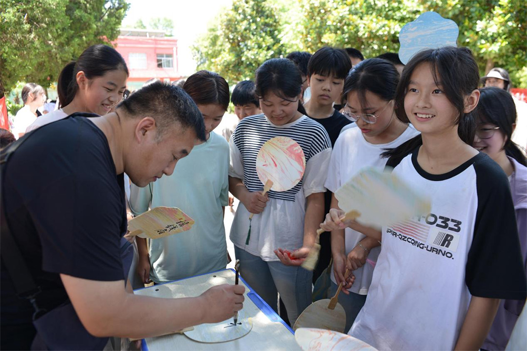 6月27日—7月10日,南阳理工学院积极响应文化传承与乡村振兴协同推进的号召,组织数字媒体与艺术设计学院实践团队奔赴淅川老城镇初级中学,开展“非遗传承进乡村,关爱留守促振兴”文化传承活动。实践团聚焦书法、漆扇、扎染、剪纸四类非遗项目,为留守儿童搭建起接触、体验传统文化的平台,让古老非遗在乡村校园的土地上,与孩子们的纯真心灵碰撞出奇妙火花。