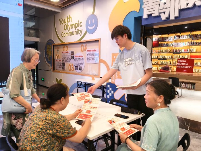 02图为“数忆和平”团队在为社区居民分发主题材料。蒙湘婷供图