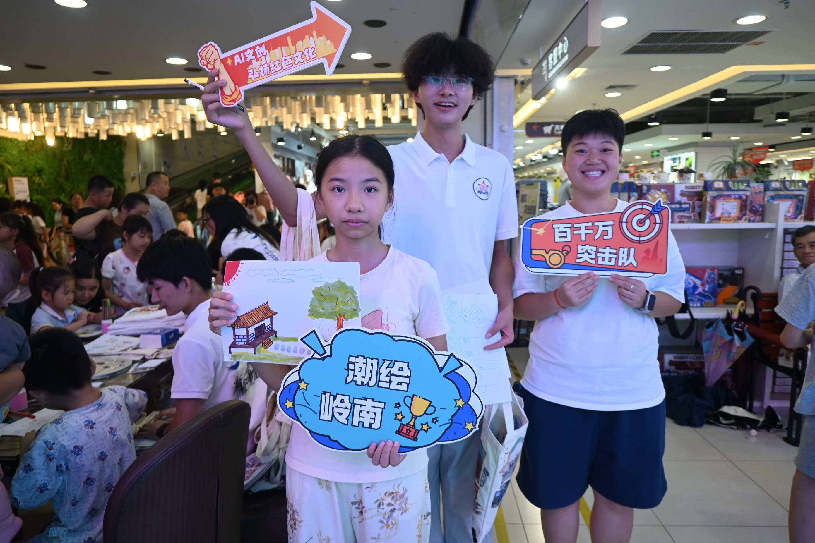 岁宝百货二楼活动中心化身色彩、想象与科技交融的创意空间,一群充满朝气的大学生社会实践团队精心策划的