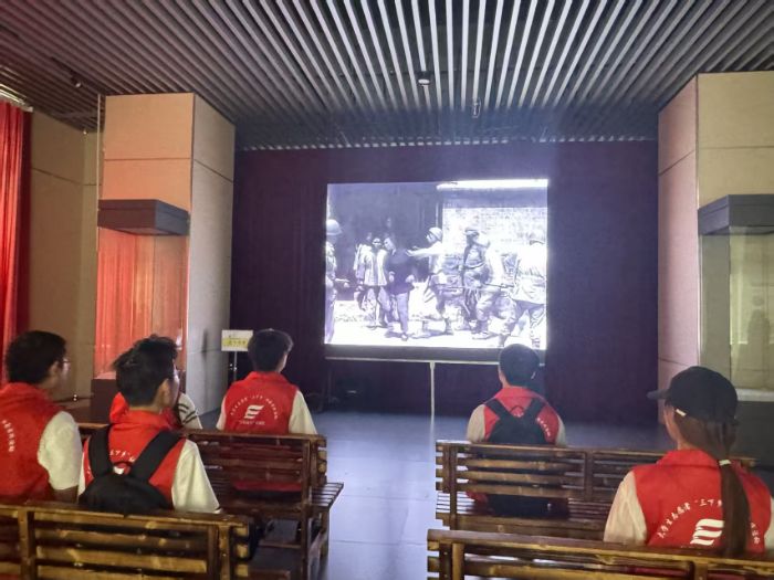 行至红色主题展区,成员们排坐于荧幕前,一段珍贵的黑白影像,将时光拉回战火纷飞的年代。画面里,淄博军民穿梭枪林弹雨、浴血御敌的身影清晰可辨,日寇暴行与同胞抗争的场景交错呈现。成员们屏气凝神,目光紧锁屏幕,随着影像推进,仿佛亲身踏入那段峥嵘岁月,见证革命先辈以血肉之躯护家国的壮烈。当看到马鞍山保卫战中,村民与战士携手抗敌、宁死不屈的画面,沉默与震撼在席间蔓延,先辈们为信仰舍生忘死的无畏,深深烙印在每一位成员心中。