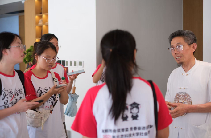 随后,安韵小队成员前往两山文创阁,拜访了这里的店主葛元德爷爷。这位老矿工抚摸着店内一块斑驳的矿石样本,向队员们生动描述了当年粉尘蔽日、下矿如搏命的艰辛岁月。他回忆了过去“靠山吃山”模式下的生产场景,以及环境恶化对生活的影响;也分享了转型初期的犹豫与尝试,直至如今通过石头雕刻、盆景创作实现生活与事业的新平衡,其个人职业转型恰是余村从“卖资源”到“卖风景”的微观缩影。让冰冷的废石重获艺术新生,成为生态价值转化的鲜活例证。