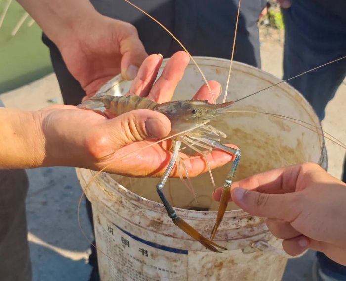 更特别的是捕捞方式。罗氏虾是底栖虾,不用地笼,全靠人工拉网。此外,密集养殖区的尾水交叉污染是病害根源,而班永喜的 “自循环” 系统,把风险降到了最低。