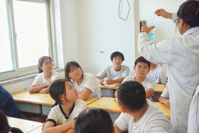 实验演示完后,实践团成员用通俗易懂的语言向孩子们解释了该现象背后的科学原理,夕阳透过窗户,照在孩子们沾满水渍的手上,也照在他们眼中闪烁的光芒里。随后,实践团成员鼓励孩子们动手尝试,体验科学的魅力。