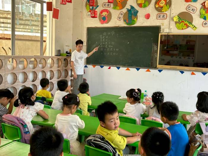 除了关爱老人,实践团还将温暖带给社区的孩子们。8月11日至14日在社区暑托班,成员们为孩子们带来了一节别开生面的趣味知识课。课堂上,成员们通过生动有趣的绕口令教学,让孩子们在欢快的氛围中锻炼语言表达能力;还设计了互动小游戏,激发孩子们的学习兴趣。孩子们积极参与、踊跃发言,课堂气氛十分活跃,一个个稚嫩的脸上写满了快乐与收获。