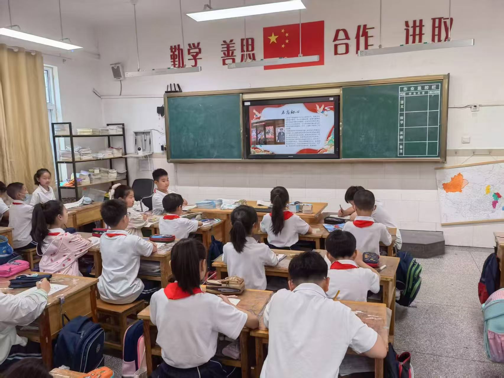 团队成员与田吉娜老师共同策划,和同学们反复研讨剧本,徐州市西苑小学三(3)中队的同学们在国旗下呈现了一场震撼人心的情景剧——《秘密交通线上的忠诚卫士》。开篇即还原战火纷飞的年代,亓俊尧、史抒迅等队员分别饰演运河支队支队长胡大勋、副政委童邱龙等角色,以“胡霖的袜子”为线索,生动演绎了一段烽火中的感人故事。孩子们身姿挺拔、眼神坚定,用稚嫩却充满力量的表演,提醒全体师生铭记历史伤痛,珍惜当下和平。