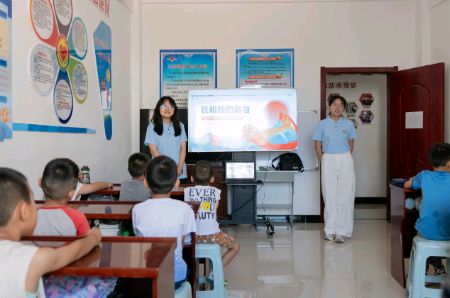 团队走进中国工农红军西路军纪念馆,通过历史图片、实物展品及多媒体场景复原了解西路军将士的悲壮历程,并围绕“信仰的力量”录制思政课微视频讲述红军精神。在医院西路社区和滨河社区的暑期学校,他们以视频讲董振堂事迹,制拼音卡片带儿童用普通话朗读,邀儿童上台读红色精神口令、复述故事,让红色教育与推普落地。