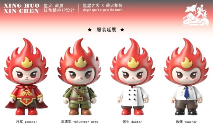 1.IP共生:星火成行 “星火”之名直接源自革命经典名言“星星之火,可以燎原”,象征希望的火种、革命的起源,是志愿军战士保家卫国、追求光明的坚定信念化身。