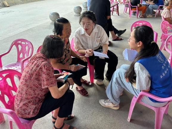 (2)实践团招募精通闽南语的成员,将诈骗话术翻译成方言,用“上门推销三无产品”“冒充子女借钱”等老人身边的案例,详解防骗要点;
