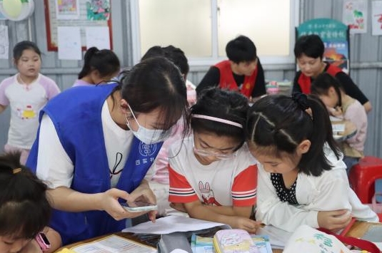 图 11图为实践团成员一对一与小朋友进行反诈宣讲