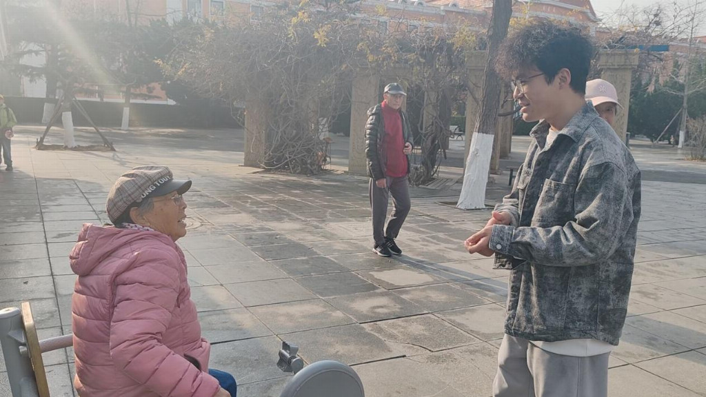 随后实践团成员前往大连市内,随机采访大连市民,在公园内成员们遇到了一位锻炼的老奶奶,当问道对大连的印象时,她往椅背上靠了靠笑着说:“大连啊……好!真好”“以前这一片是电车终点,叮叮当当吵得很;现在修了地下通道,安静了,反倒有点想听那声叮当。”通过采访不同人群,实践团成员初步勾勒出居民对城市更新的真实感知与核心诉求。