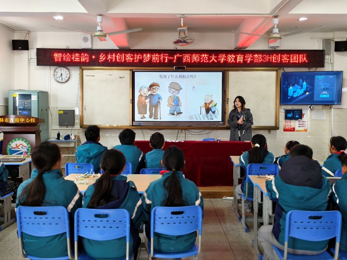 2026年1月12日至16日,广西师范大学教育学部3H创客团队深入广西桂林市龙善崇光小学与西南中心校两所乡村小学,开展为期一周的“智慧养老”主题创客教育实践。