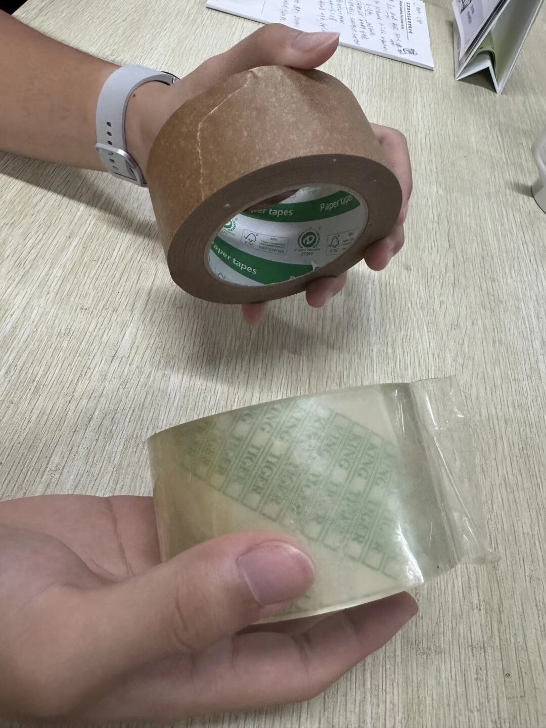 图3. 完全可降解胶带与透明塑料胶带的对比