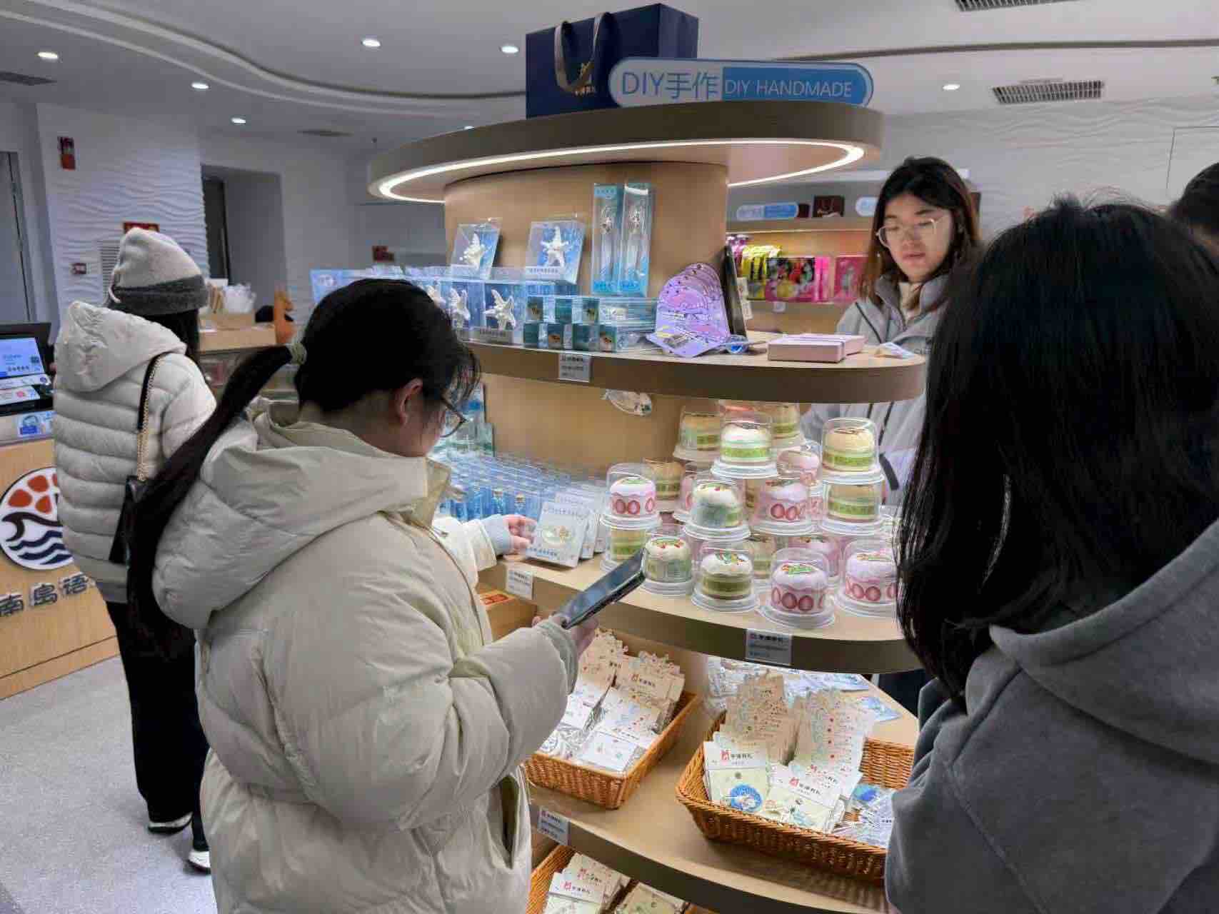 图为实践队成员在博物馆文创店分析文创产品设计理念 白誉供图
