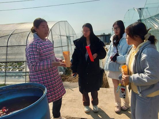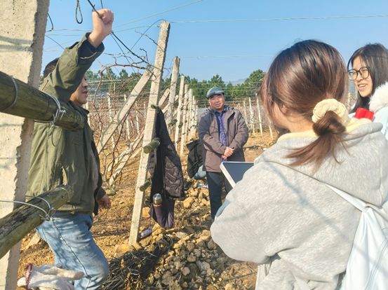 2026年1月11日,广西师范大学“绿野寻踪”实践团队以“青春探农旅,数韵助振兴”为核心主题,前往广西桂林兴安县溶江镇和严关镇开展实地调研工作。团队立足当地葡萄产业发展实际,聚焦农旅融合发展中的痛点与机遇,以青年视角探索数字技术赋能乡村振兴的新路径。调研过程中,当日上午9点,实践团队抵达广西桂林兴安县葡萄协会办公室,与协会会长深入交流,梳理典型案例并开展深度分析,了解到葡萄产业发展背景、种植技术与销售现状,并且看到了在年会使用过但未持续推广的IP形象。此外,会长还带领团队来到了错峰葡萄基地、具代表性的种植农户、试验地和核心示范区,成员们与各负责人进行深入交流,实地考察避雨棚等技术,并对相关农户进行采访,获取数据,深入了解兴安县葡萄产业的发展现状、农旅融合推进情况及数字化转型需求。通过此次调研,队员们拓宽了视野,为后续探索农旅融合路径奠定了基础,也更加坚定以青春力量助力乡村振兴,推动农业旅游业的融合发展的决心。