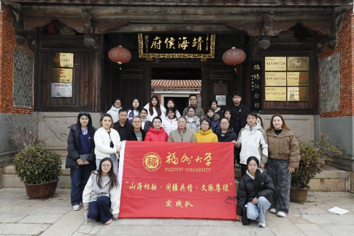 为深入学习贯彻习近平总书记关于加强历史文化遗产保护、铸牢中华民族共同体意识的重要指示精神,推动“行走的思政课堂”与“社会大课堂”同向同行、同频共振,1月30日—31日,福州大学刘敏榕工作室“山海相融·闽疆共情·文脉赓续”寒假社会实践队、晋江市闽台缘、晋江市图书馆、晋江市陈埭镇统战部、山东大学等一行30人,走进福建省泉州市晋江市,围绕非物质文化遗产保护与传承开展实地调研。实践队以田野调查为抓手,循着满汉交融、闽台同根、侨心向祖国的历史脉络,在看得见、摸得着的文化现场中体悟中华文明的连续性与凝聚力,推动中华优秀传统文化在新时代赓续绵延、焕发新生。实践队先后走访施琅纪念馆(靖海侯府)、闽台粘氏大宗祠、粘厝埔满族文化活动中心、福林侨史馆等文化场所, 实地观摩、深度访谈与沉浸式体验,系统梳理文化交往交流交融的实践路径,采集非遗传承的一手素材,在生动实践中深化对中华民族共同体的理解与认同。