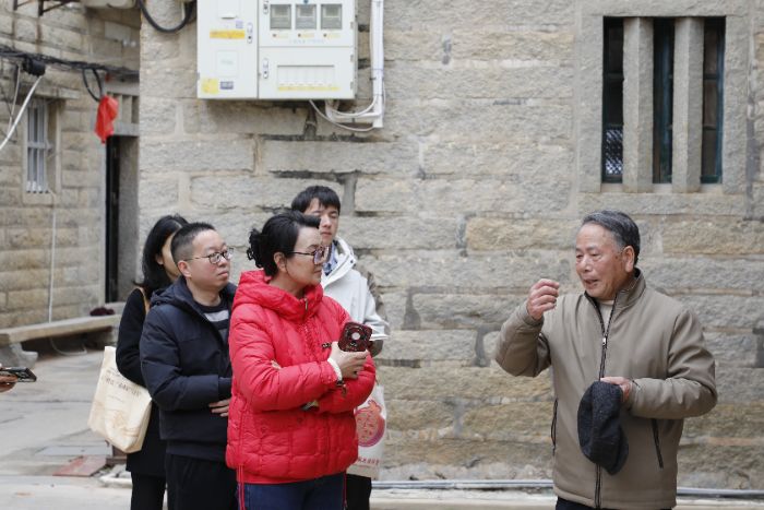 在靖海侯府与施琅纪念馆,队员们借助翔实史料与珍贵文物,回望施琅将军维护国家统一、稳定东南海疆、推动两岸往来的历史功绩,从国家叙事与地方记忆的交汇处,深刻体悟闽台同根同源、血脉相连的文化底色与历史逻辑。随后,实践队走进衙口闽台粘氏大宗祠。粘氏族人讲述了家族自北向南迁徙、与当地汉族和睦相处、共建家园的数百年历程。尤为动人的是,宗祠曾因地震受损,后在台湾宗亲慷慨捐资下完成修缮重建,成为“两岸一家亲”、守望相助的鲜活注脚。队员们由此更加真切地理解:文化认同是最深沉的力量,血脉亲情与共同记忆是凝聚民族共同体的重要纽带。