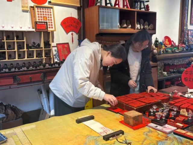 1月19日至20日,实践队先后走进福州市林则徐纪念馆、中华福馆和福文化博物馆开展实地调研。于林则徐纪念馆,成员们通过展厅内陈设旧物考察其作为红色活动场所的“福”文化特征;于中华福馆,成员们聆听非遗传承人杨晓喻讲解,了解康熙御笔“福”字的文化内涵,并亲手体验传统“描福”与“拓福”的技艺;于福文化博物馆,成员们沿“享福、寻福、送福、造福”主线,在与志愿者吴清霞的深刻交流中读懂福文化的深厚底蕴。