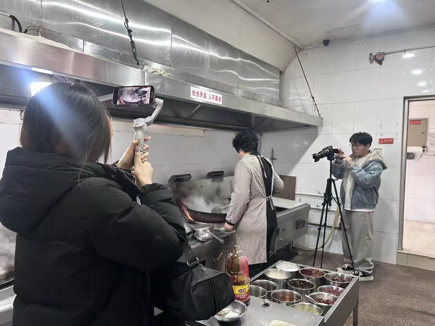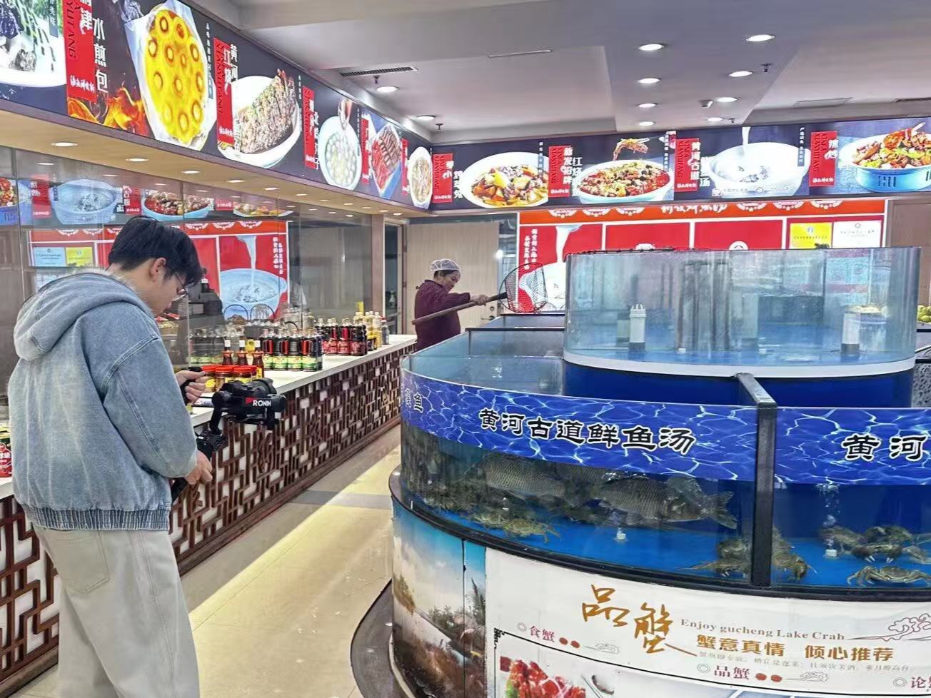 图注:团队成员在东营鲜鱼汤店实景拍摄制作过程