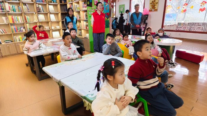 图为志愿者向儿童介绍本次活动。 刘盈欣 供图