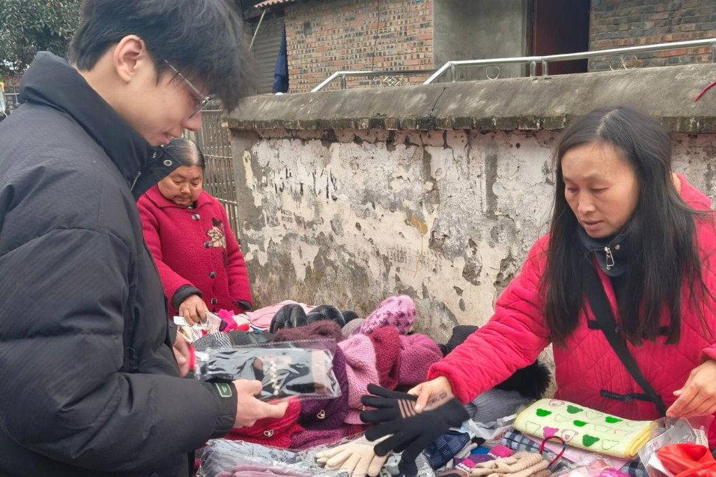 图为实践团成员年前赶集。杨沔 供图