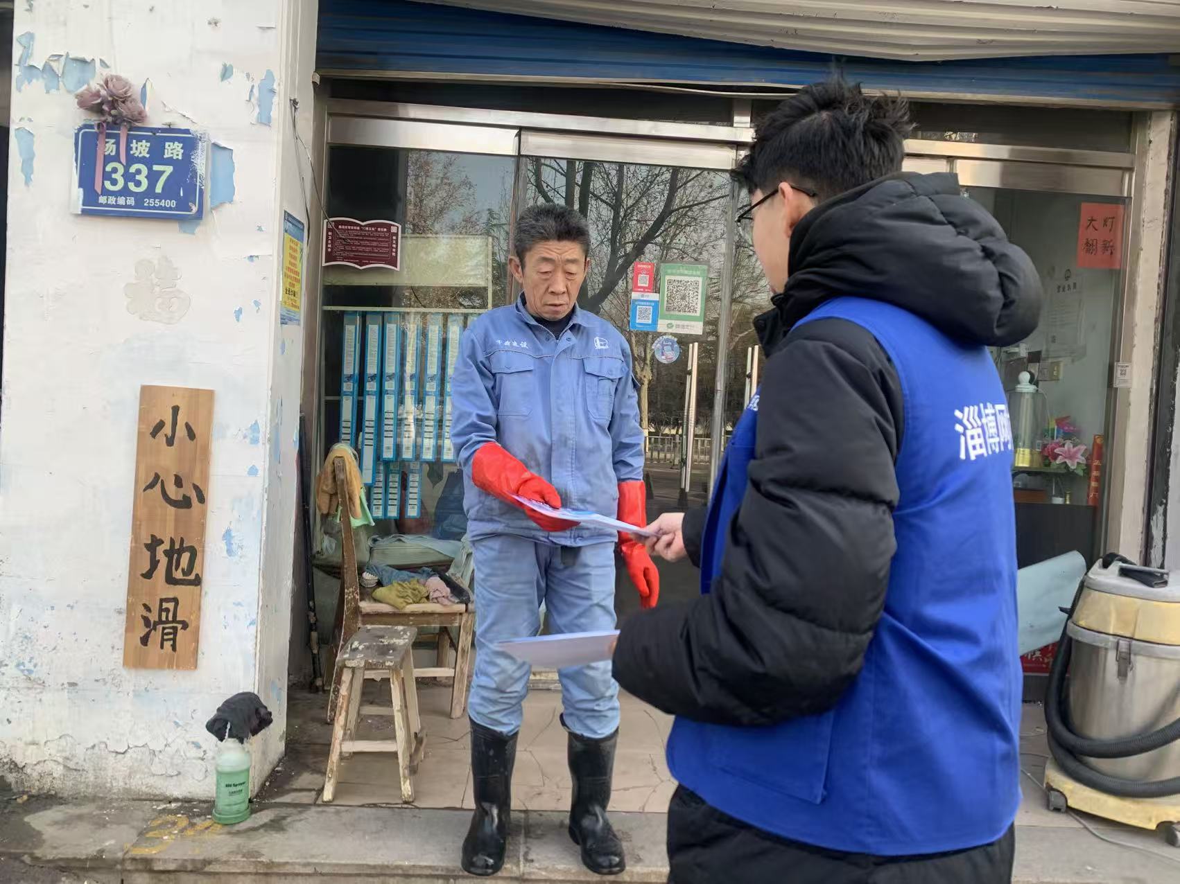 张家瑞在沿街商铺发放反诈民警提示——曹新朋摄