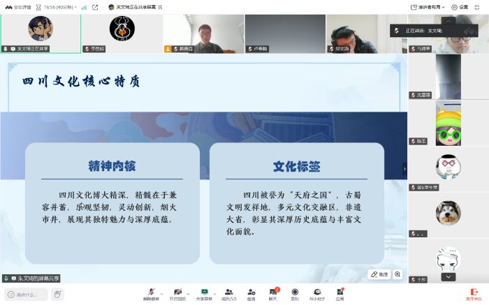 宣讲尾声,实践团发出“共护巴蜀文脉”的倡议。巴蜀文化是中华文明瑰宝,需代代守护与创新。未来,实践团将持续探索文化传承新路径,也期待与各界携手,让千年文脉在新时代焕发新光彩。此次线上宣讲打破空间限制,内容精炼、感染力强,不仅增进了同学们对巴蜀文化的了解,更激发了文化传承热情,为寒假社会实践增添了浓厚文化色彩。