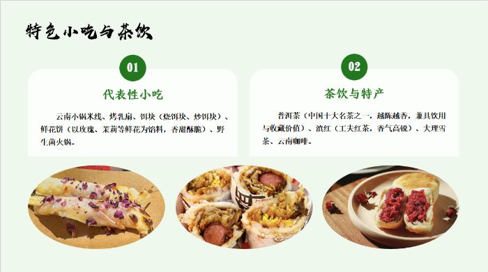 在白族人家,团员们体验了“一苦二甜三回味”的三道茶礼仪,不仅收获了味蕾的享受,更领悟到其中蕴含的人生哲理;在普洱茶山,见证了普洱茶从鲜叶采摘到压饼成型的复杂工序,品味其醇厚回甘的独特口感,了解到普洱茶“越陈越香”的收藏价值与文化内涵。此外,烤乳扇、饵块、鲜花饼等特色小吃,以其香甜酥脆的口感,成为实践团成员心中难以忘怀的云南味道。
