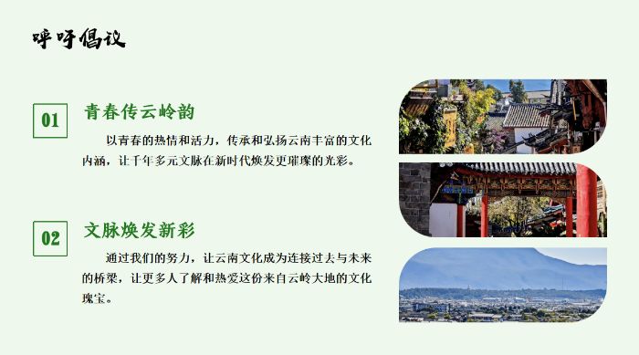 实践总结:以青春之力,传文化之韵 此次寒假社会实践,风采云南实践团成员通过实地探访、访谈记录、影像留存等多种方式,系统梳理了云南滇中、滇西、滇南、滇东北、滇西北五大文化圈的交融脉络,深入挖掘了少数民族文化、古滇文明、非遗技艺的当代价值。大家深刻认识到,云南文化是中华文明多元一体的璀璨瑰宝,既有自然赋予的灵秀之美,更有各民族共同铸就的精神之魂,其“多元包容、敬畏自然、热情质朴、坚韧灵动”的核心特质,为当代文化传承提供了宝贵启示。