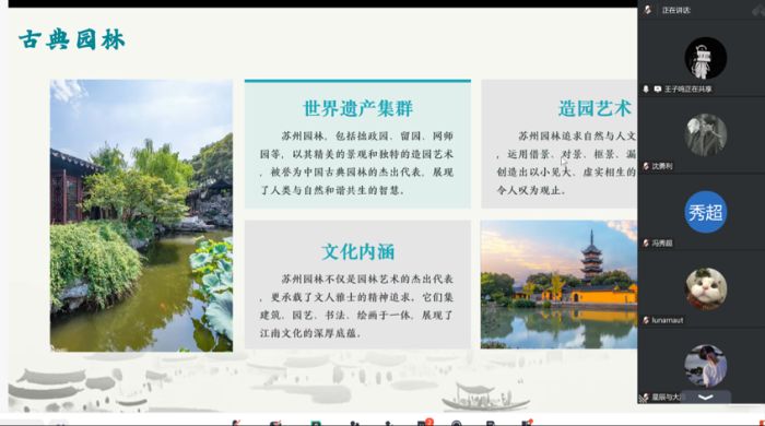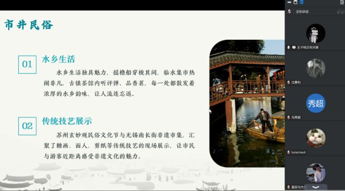 本次线上宣讲以“青年视角解码江南文脉”为核心,实践团成员通过精心设计的演示文稿,结合图文、影像等多元形式,将江苏文化的厚重底蕴与鲜活魅力生动呈现。