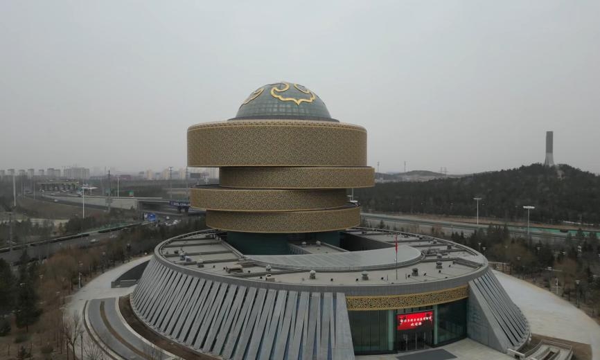 鄂尔多斯青铜器博物馆作为全球馆藏鄂尔多斯青铜器数量最多的专题博物馆,集中展现了北方游牧民族的文明成果与历史印记。场馆穹顶复刻“鹰顶金冠饰”经典造型,灵动轮廓与晨光交相辉映,整体建筑兼具艺术美感与文化底蕴。