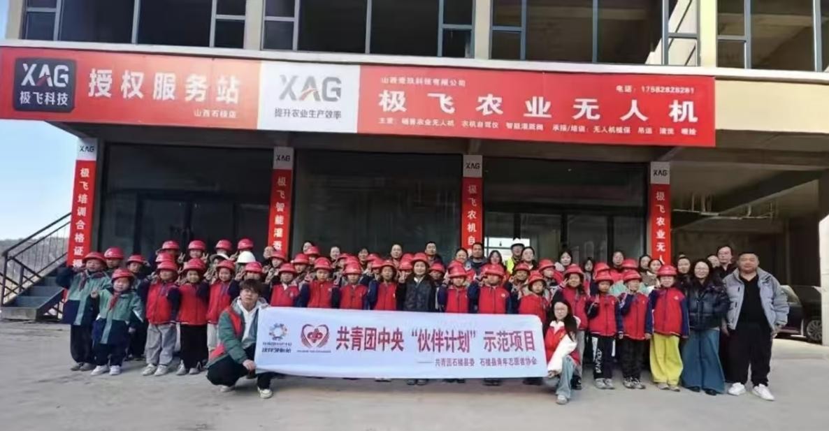 依托共青团中央“伙伴计划”示范项目,团队带领当地青少年走进极飞农业无人机授权服务站,开展科技科普研学活动。我院志愿者们联合专业教官,为孩子们讲解无人机的发展历史、工作原理,引导孩子们近距离观察无人机结构、亲手体验简易操作流程。此次活动不仅拓宽了乡村青少年的科学视野,更激发了他们探索科学、热爱科学的兴趣,搭建起科技赋能乡村振兴的桥梁。