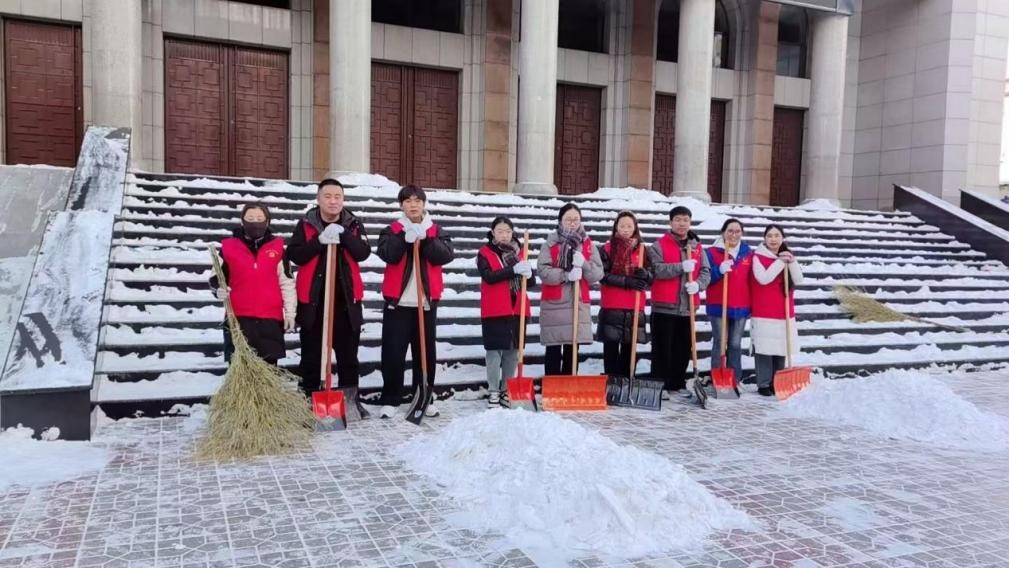 面对低温降雪天气,我们团队志愿者主动担当作为,积极参与扫雪除冰志愿服务。身着红色志愿马甲的动力学子们手持铁锹、扫帚,分工协作、不畏严寒,对公共区域台阶、广场路面等易滑区域进行全面清理,及时消除道路结冰隐患,为当地群众营造了安全、畅通的出行环境,用实际行动践行“奉献、友爱、互助、进步”的志愿精神。