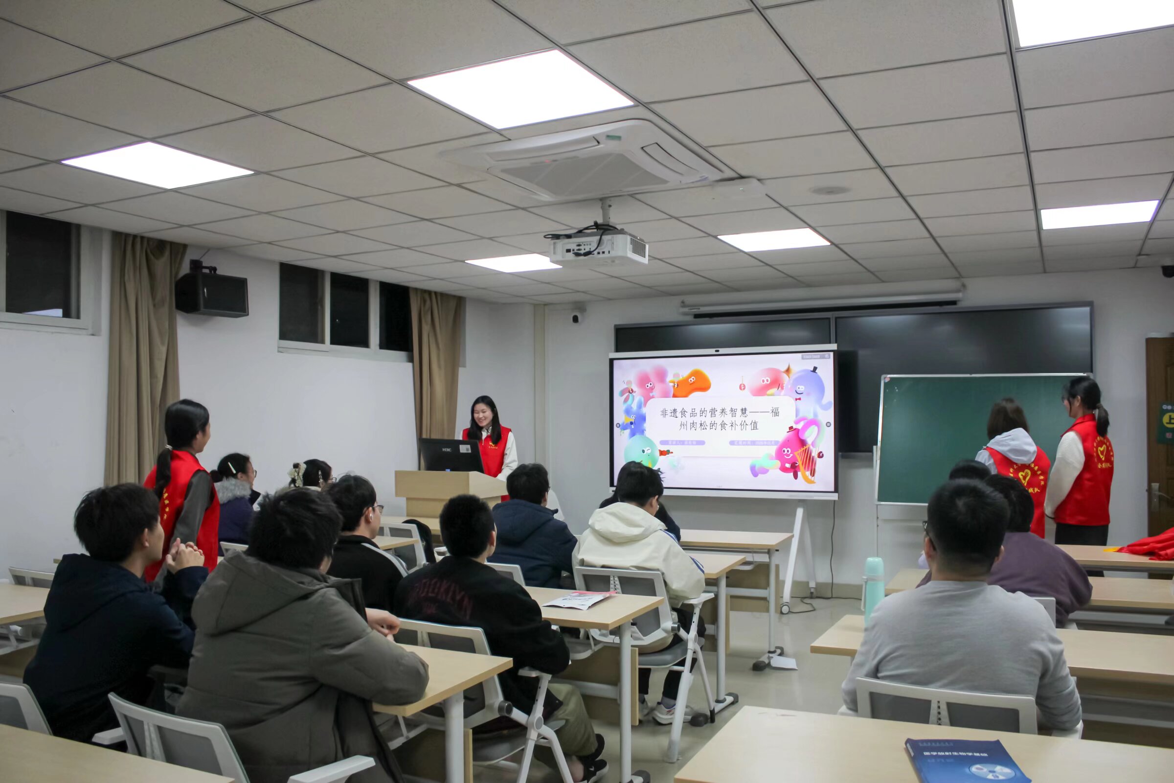 实践活动首站,队员们充分发挥医学专业优势,在福州当地开展了题为“非遗食品的营养智慧——福州肉松的食补价值”的科普讲座。
