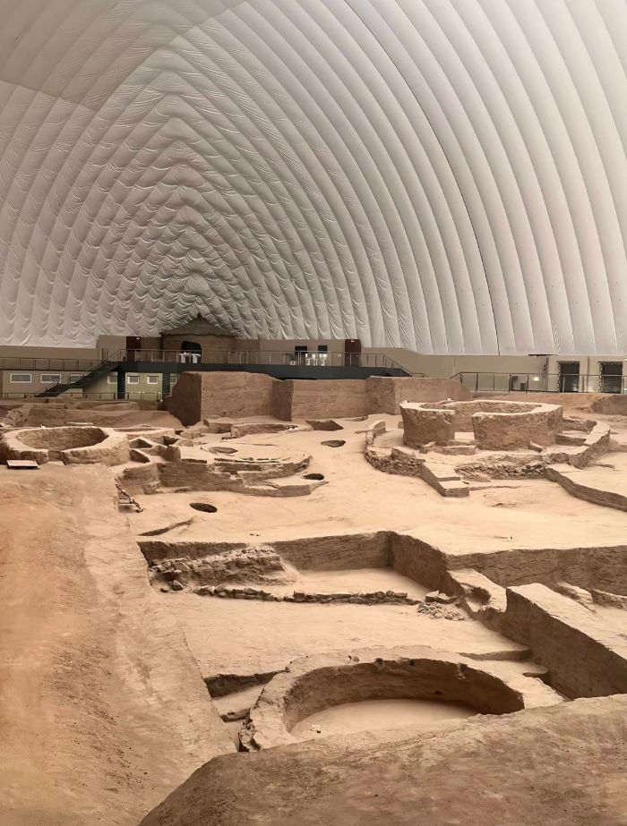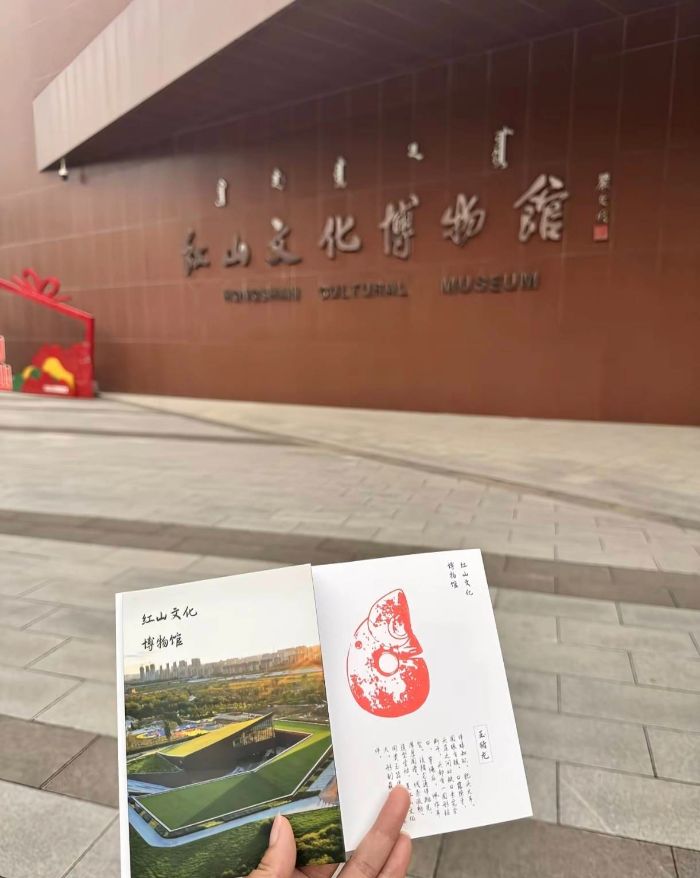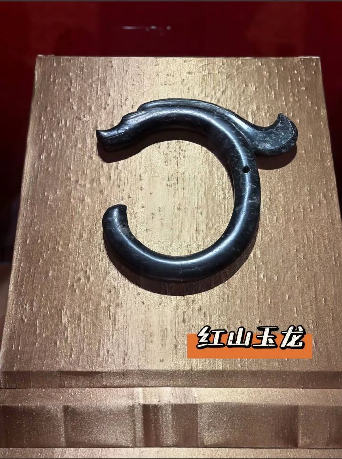 图为实践团团员参观内蒙古赤峰红山文化博物馆,中图为红山文化遗址,右图为其中出土的红山玉龙。杨崇斌供图